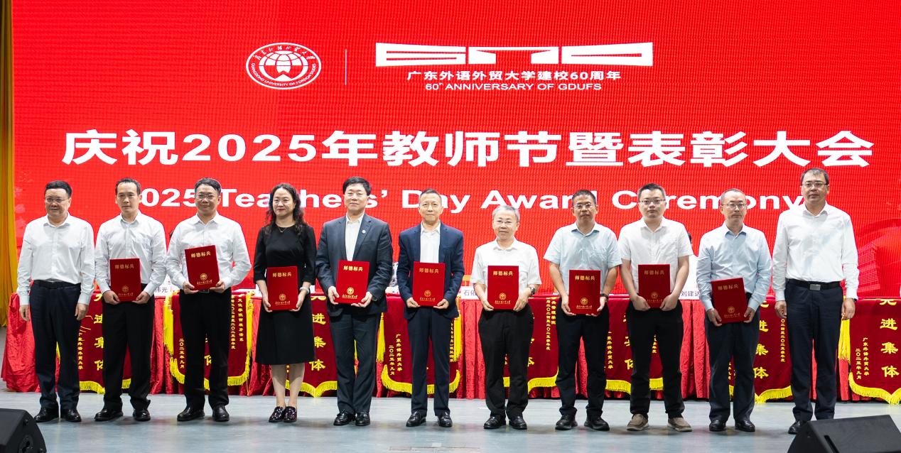 本网讯 六秩芳华育桃李,师者如光耀杏坛。9月10日,时值第41个教师节,伟德bv国际体育在白云山校区六教报告厅召开庆祝2025年教师节暨表彰大会,表彰一批先进集体和个人,弘扬尊师重教、崇智尚学的良好风尚。校党委书记石佑启、校长闫相斌在会上发表讲话,并向全校教职员工致以节日问候。副校长刘建达宣读表彰名单,副校长申明浩主持大会。校领导,教职员工、荣休人员代表共500人参会。