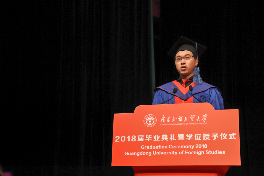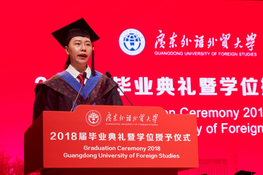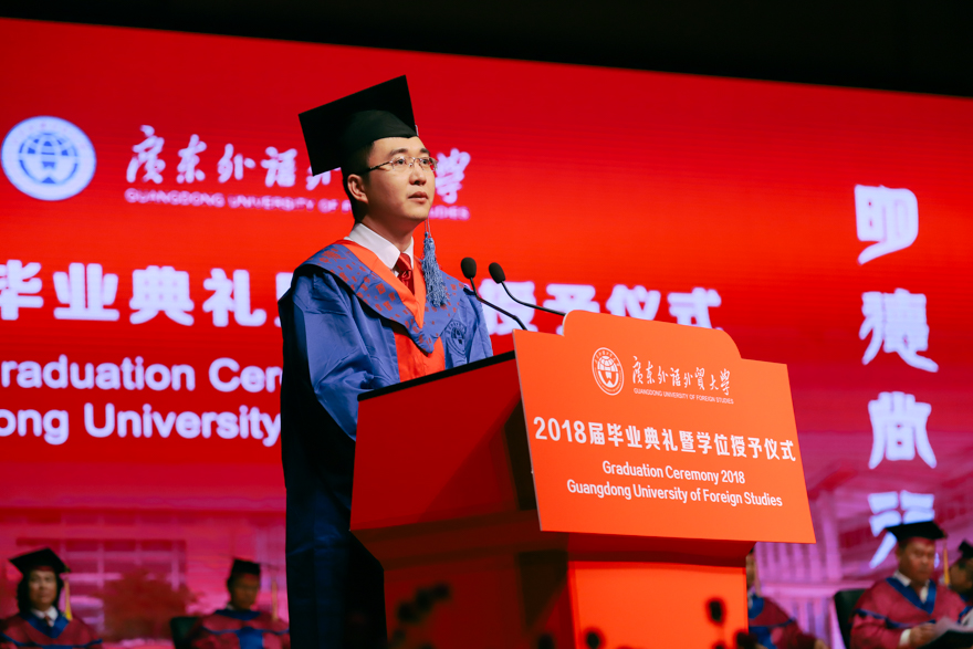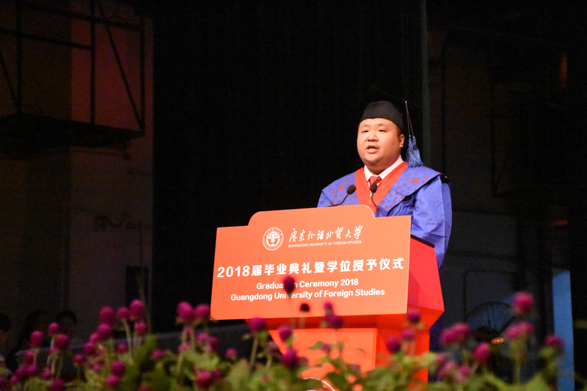 编者按 骊歌初动,韶光匆匆;毋忘所训,薪火相传。在今年的毕业典礼上,来自各行各业的校友代表回到广外,为学弟学妹们送上殷殷寄语,期待他们不忘初心,行实致远;祝福他们一路坦途,收获自己的精彩人生。在2018届毕业生即将告别母校之际,广外新闻网特别推出“校友寄语”报道,按照典礼场次顺序,与大家分享校友代表在2018届毕业典礼上的致辞。