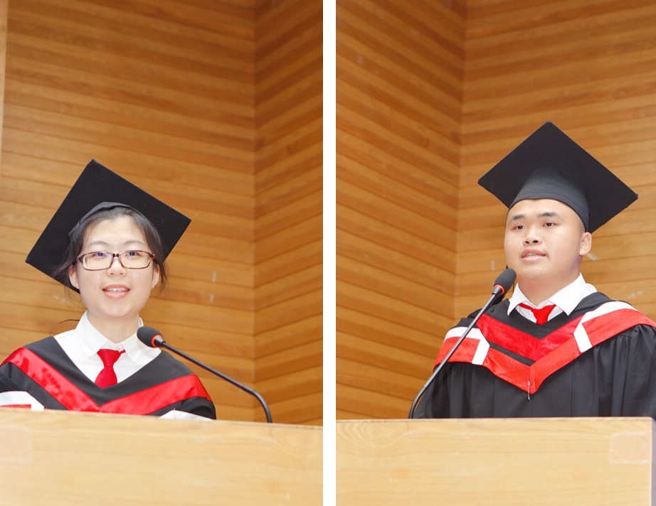 最后,学生代表卢毓轩、奖学金获得者朱颖璇分别上台与同学们分享了他们的学习方法和在广外的成长故事,并代表所有国际学院的结业生向学校的领导、老师以及一直在身边默默支持自己的家人、朋友表达了诚挚的感谢,还呼吁即将出国的同学们要努力讲好中国故事。