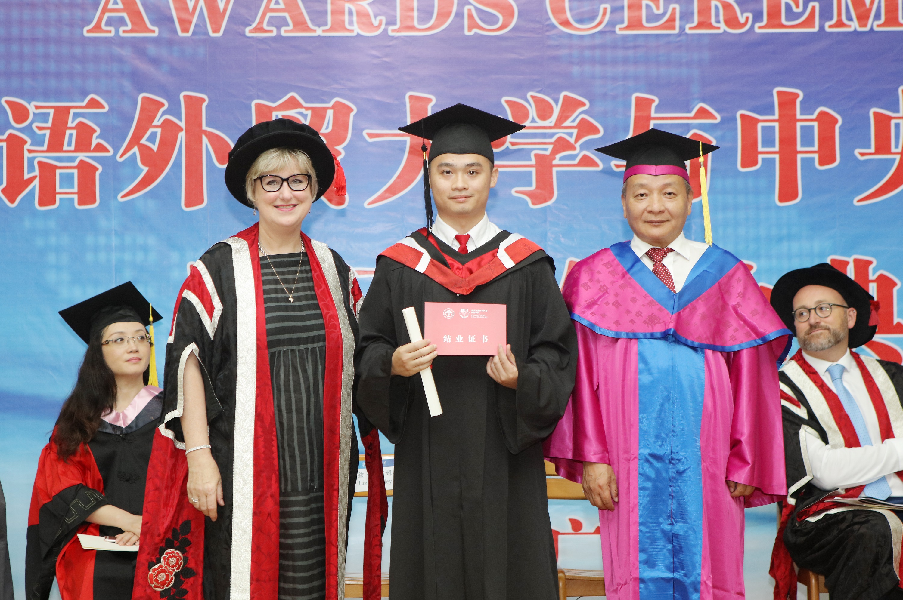58位就读兰开夏国际项目的学生从Liz Bromley和陈林汉手中接过了结业证书,其中有两名表现优异的同学获得了兰开夏大学授予的奖学金。