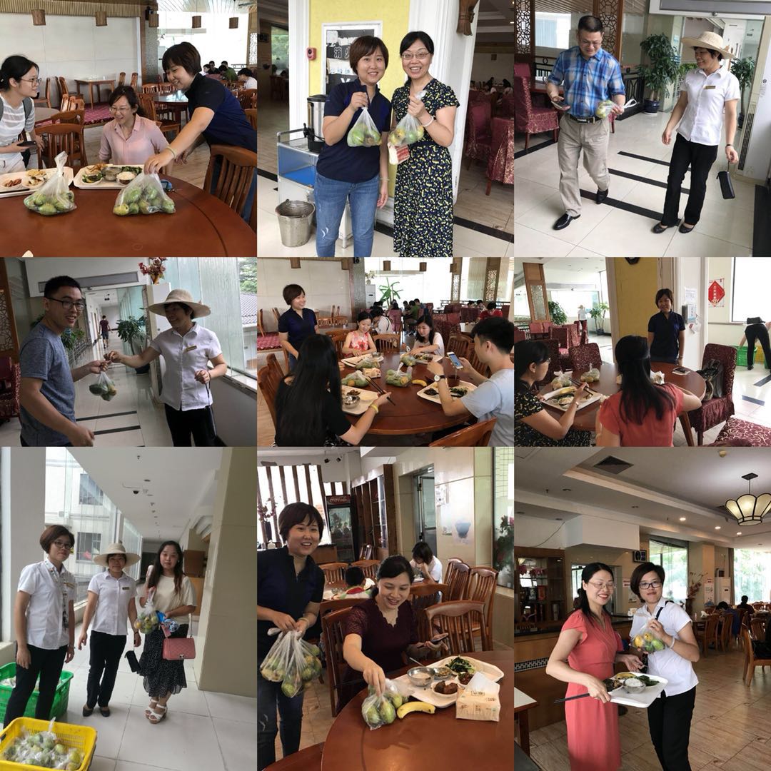 本网讯 校园里的芒果树在这个夏天迎来了大丰收,沉甸甸的果实压弯了树枝。为感谢全校师生对校园绿化养护工作的支持和理解,同时避免大量果实掉落带来的安全和卫生问题,在校团委、后勤处的组织下,物业公司于6月25日分别在南、北校区集中采摘芒果,并将采摘到的芒果免费派送给学校师生。