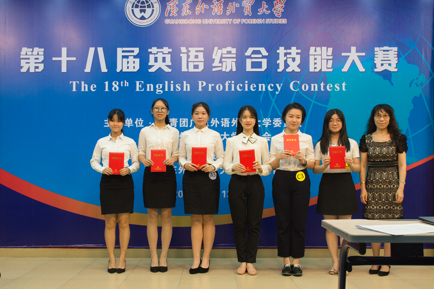 本网讯 为了营造良好的英语学习氛围,展示伟德bv国际体育的英语教学特色,6月13号晚,由商英学院承办的第十八届英语综合技能大赛校级决赛在北校区水上报告厅举行。从初赛脱颖而出的9组队伍沉着应战,展示了他们优秀的英语能力,最终高级翻译学院的We Are Groot队获得专业组一等奖,商学院的Felix Felicis队伍获得非专业组一等奖。