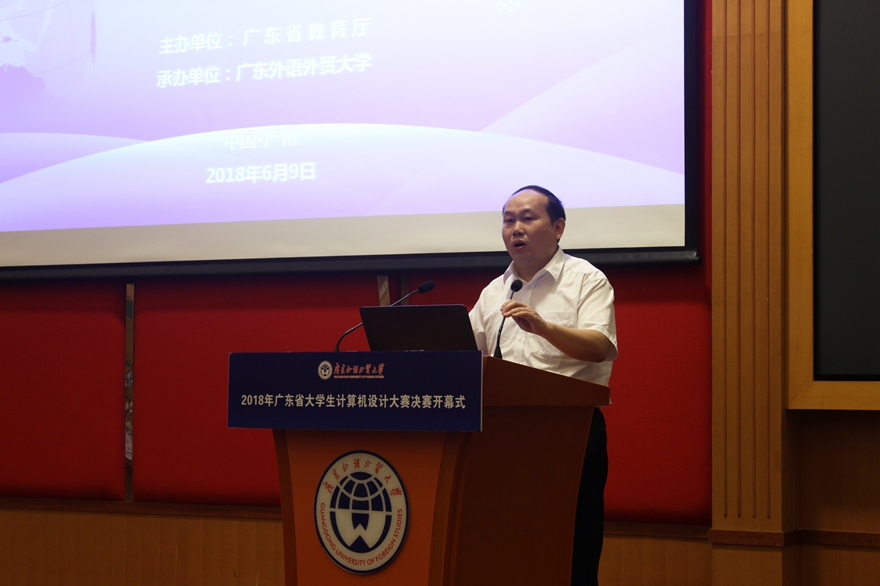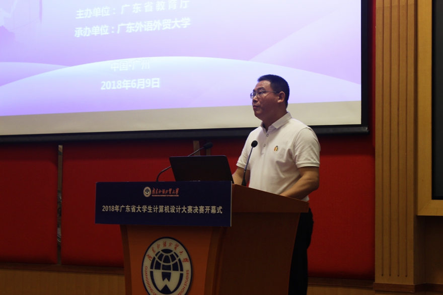 本网讯 6月9日上午,由广东省教育厅主办、伟德bv国际体育大学信息科学与技术学院承办的2018年广东省计算机设计大赛决赛开幕式在北校区国际会议厅举行。大赛举办的初衷是激发省内各高校各专业大学生学习计算机知识技能的兴趣和潜能。伟德bv国际体育副校长阳爱民在开幕式上致辞,华南师范大学软件学院副院长曾碧卿等30位评委专家、省内各高校参赛队伍成员代表参加开幕式。