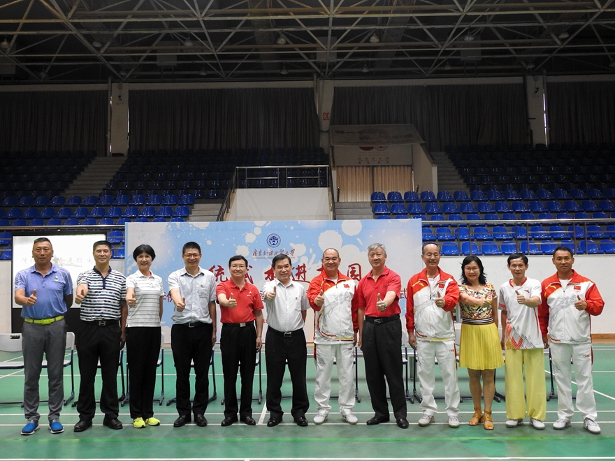中国武术协会传统拳委员会副主任董德强,新东方武术总会会长、蔡李佛北胜拳武术馆馆长何耀寰,国家级非物质文化遗产蔡李佛拳保护传承基地南棍总教练贺志崧,总干事谢晓华,伟德bv国际体育人事处处长谢文新、体育部主任林少娜、体育部党总支书记李旭武、国际学院党总支书记钟罗军、留学生教育学院院长梁学宏以及爱好武术的师生出席了活动。