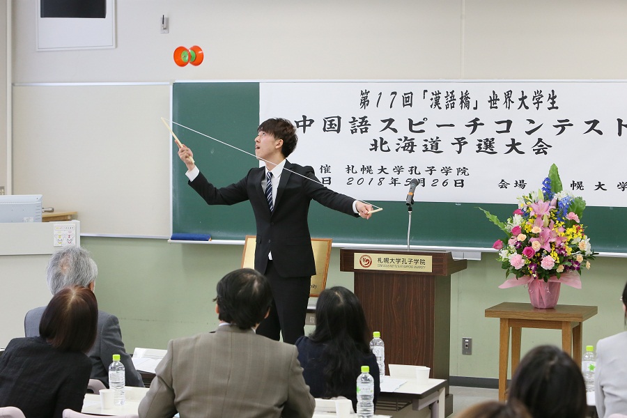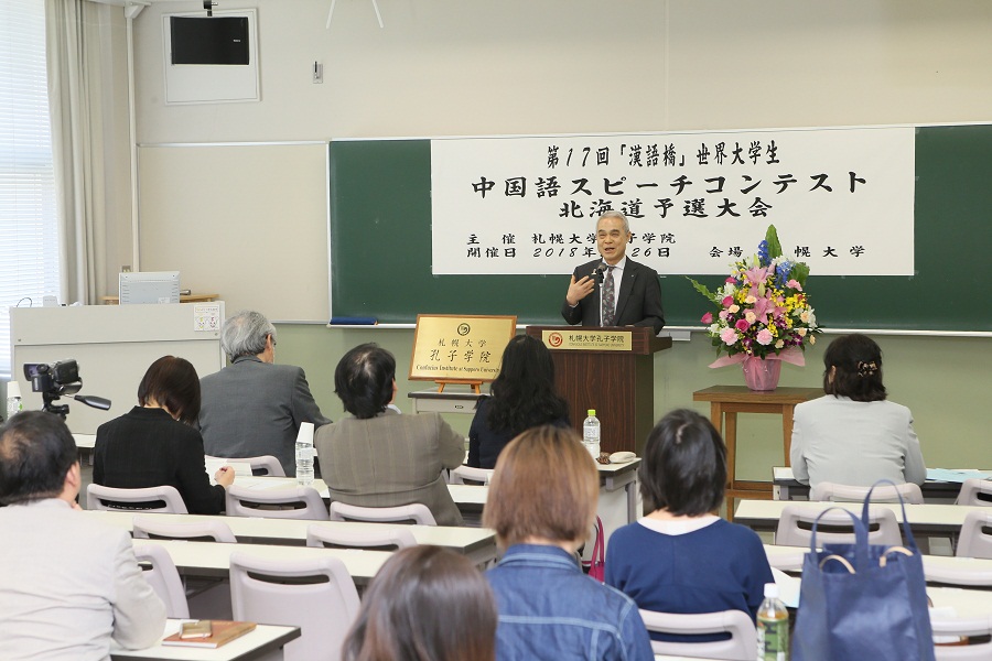 本网讯 5月26日,札幌大学孔子学院主办了第十七届“汉语桥”世界大学生中文比赛日本北海道地区预选赛,活动旨在加深日本对中国文化的理解,促进中日双方的交流与合作。来自札幌大学、北海商科大学等的选手参加了比赛。中国驻札幌总领事馆领事张毅、札幌大学校长兼孔子学院理事长铃木淳一出席活动并致辞。六名汉语专家担任本次比赛评委。