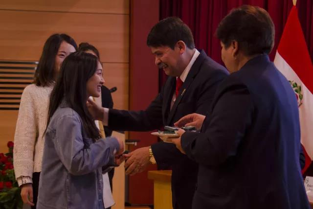 安赫利卡对来到阿雷基帕参加岗中培训的志愿者教师表示热烈的欢迎,并希望大家把这里当成自己的家,今后常来孔院进行交流访问。彭启贵宣读了中国驻秘鲁大使贾桂德发来的贺信。贾桂德在贺信中肯定了孔子学院和所有汉语老师在推动中秘关系发展中所做出的积极贡献,他向主讲嘉宾及参训志愿者教师们表示了诚挚的慰问,对圣玛利亚天主教天主教大学和孔院为筹办此次培训所做出的努力表示感谢。