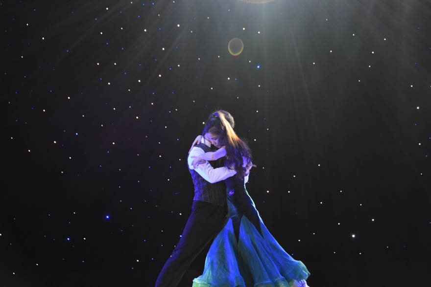 中国语言文化学院带来舞蹈《活着1937》,在压抑的音乐声中,身穿不同的民国服装的女子如同傀儡一般从舞台的四周登场。她们有的是学生,有的是母亲,有的是农妇,有的甚至仅仅是孩子。随着枪声响起,紧凑的舞步和一次次的倒地之后艰难的起身,将手无寸铁的女子在面临战争时为了活着而痛苦无力的挣扎的场景展现得淋漓尽致。突然,一个手抱婴儿的妇女的闯入让他们从麻木中醒来。舞步开始变得坚定而有力,她们用自己的双手共同托起了孩子,代表着在绝望中托起了希望。同样获得一等奖的国际商务英语学院的《问天梦·舞芳华》则为我们讲述了我国的航天梦。伴随着激昂的音乐,一群舞者以刚劲有力、整齐一致的动作,展示了航天工作者逐梦的动力和干劲;随着低谷时期的来临,众人在慢板的音乐声中变得低落,动作也变得缓慢;突然,一个小女孩拿着纸飞机出现在舞台,她对蓝天的向往让大家记住了自己的初心。最后,众舞者将小女孩托起,女孩手里的简陋的纸飞机也变成了精致的飞机模型,寓意着航天工作者鼓起勇气,最终实现了梦想。
