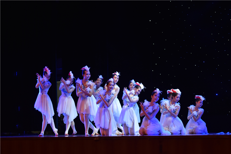 青春,对很多人而言,是一个在迷失中找回自我,在蜕变中保留初心的过程。英语教育学院的舞蹈《我》正为我们展示了这样一个历程。三个性格不一的女孩,或甜美可人,或古灵精怪,或温婉大方,用她们灵动曼妙的舞姿讲述着自己的成长。一个翻滚,一个抱膝,叙说着青春路上的迷茫和彷徨;一次起跳,一次旋转,透露着重拾初心的喜悦。而在舞蹈的后半部分,背景音从《我》变为了《他》其实也是在宣告青春的蜕变和成长。无巧不成书,英语语言文化学院也选择了同样主题的舞蹈。但与英语教育学院不同的是,他们是以群舞的方式展示着自己对青春的解读。白衣翩翩的少女仿佛化身一群单纯天真的稚子,灵动的舞步,展示少女独有的纯真和活泼;悠缓的音乐,又同时让人感受到了了少女青春时期内心的柔软与挣扎。