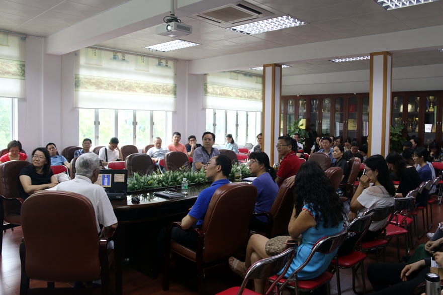 黄建华的主题报告以《一名老教师的期望》为题,和老师们分享自己为人为学的感悟。黄建华从习近平总书记提出做“四有”教师入手,结合自己的成长经历和教学科研工作,谈到自己对高校教师定位的理解,并分析了为学之难。他指出目前社会师德失范、学术不端的现象,警醒大家专注教研、超越纷争,并希望在场教职工能严谨谦逊、勇于突破,控制情绪、舒缓压力,关注健康、合理安排,做“有理想信念,有道德情操,有扎实学识,有仁爱之心”的新时代“四有”教师。