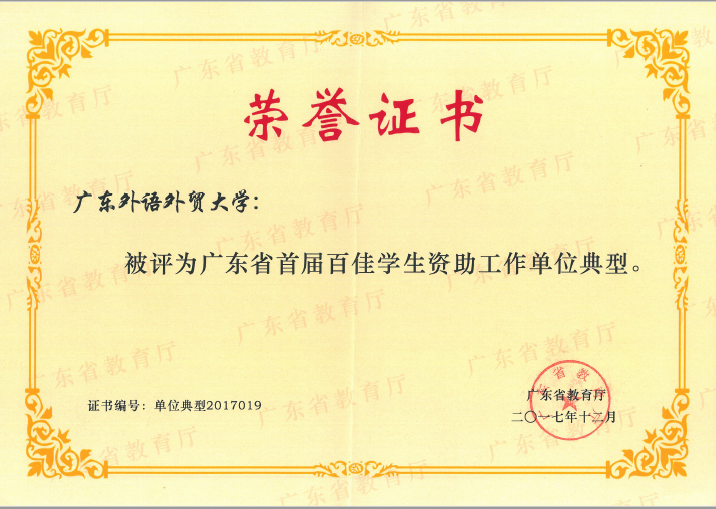 伟德bv国际体育被评为广东省首届百佳学生资助工作单位典型