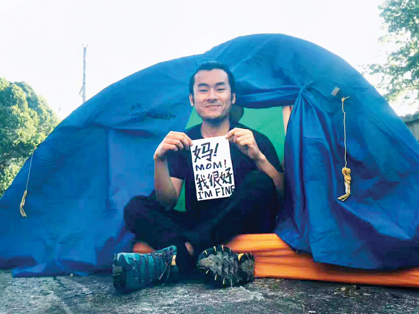 梅冲的朋友圈里有这么一张照片:他坐在帐篷前,手里拿着一张纸条,上面写着“妈,我很好”,那是母亲节的时候他特意拍下,发给妈妈看的照片。“我妈其实不怎么担心我,她知道我选择了这个事情肯定会遇到些困难,那就努力去克服嘛。”都说男生粗心大意,但梅冲能理解妈妈的心,他知道父母会担心他的安全,也知道他们会想念他,于是他会及时地给家人报平安。