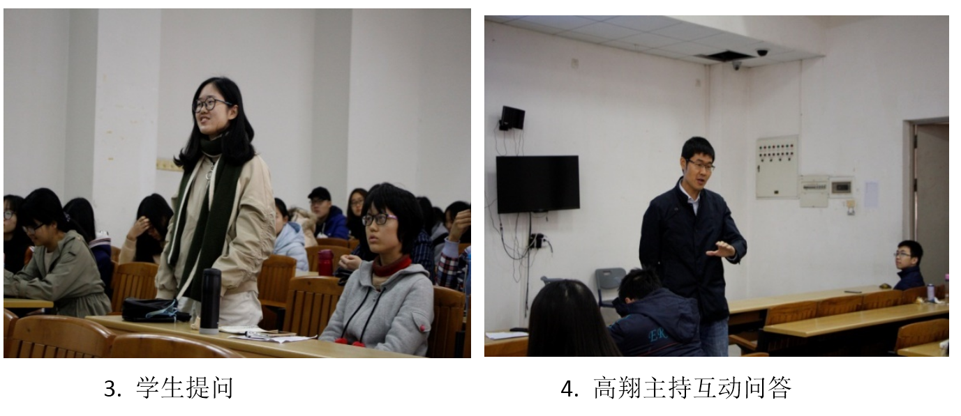 吴翔为同学们讲述了财务管理专业的职业前景。他给出了针对财务管理专业切实可行的两条职业规划路线,并结合自己的学习经历和投行的工作经历说明会计专业和财务管理专业的不同点。结合自己在中明盛和的投资案例,吴翔讲述了数种投资方向和资本的投资方式。在互动环节,同学们向吴翔探讨了研究生学历对财务管理专业的必要性,他建议进入金融领域的学生需要考虑读研或者在职读MBA课程,他认为硕士学历是进入金融行业的敲门砖之一。