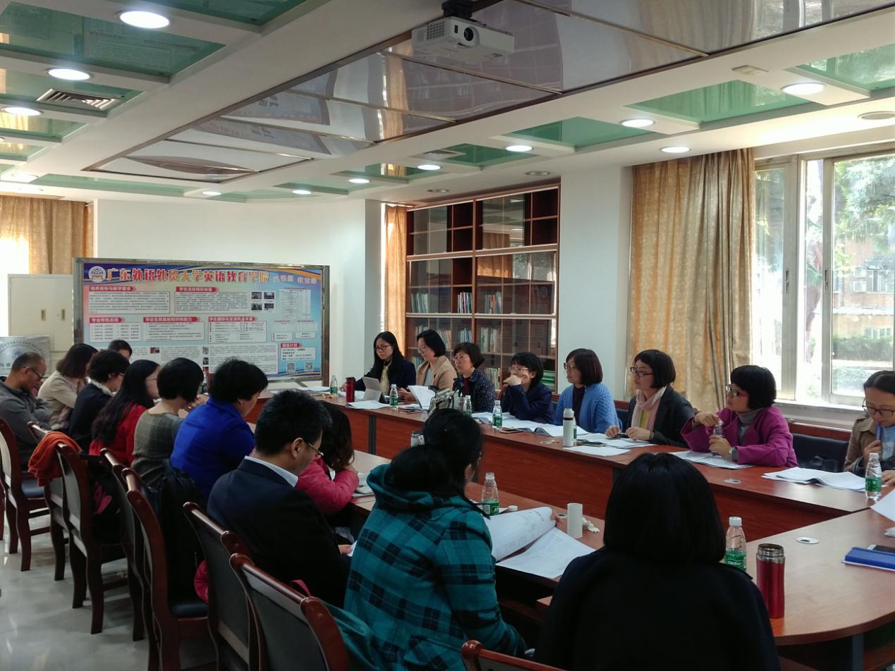 又讯 1月16日,英语教育学院英语教育系在北校区八教109室开展了学期末教研活动。2018年将迎来教育系的第一批英语师范方向的学生,大家就专业培养目标、基本要求、课程设置、主干学科、实践教学等开展了热烈而深入的讨论,确定本专业培养目标是具有扎实的英语语言基础、娴熟的英语应用能力、较强的跨文化意识,掌握现代教育理论知识及教育技术,富有创新思维和探索精神,能够胜任英语教育、科学研究和教育管理工作的中学英语教师。