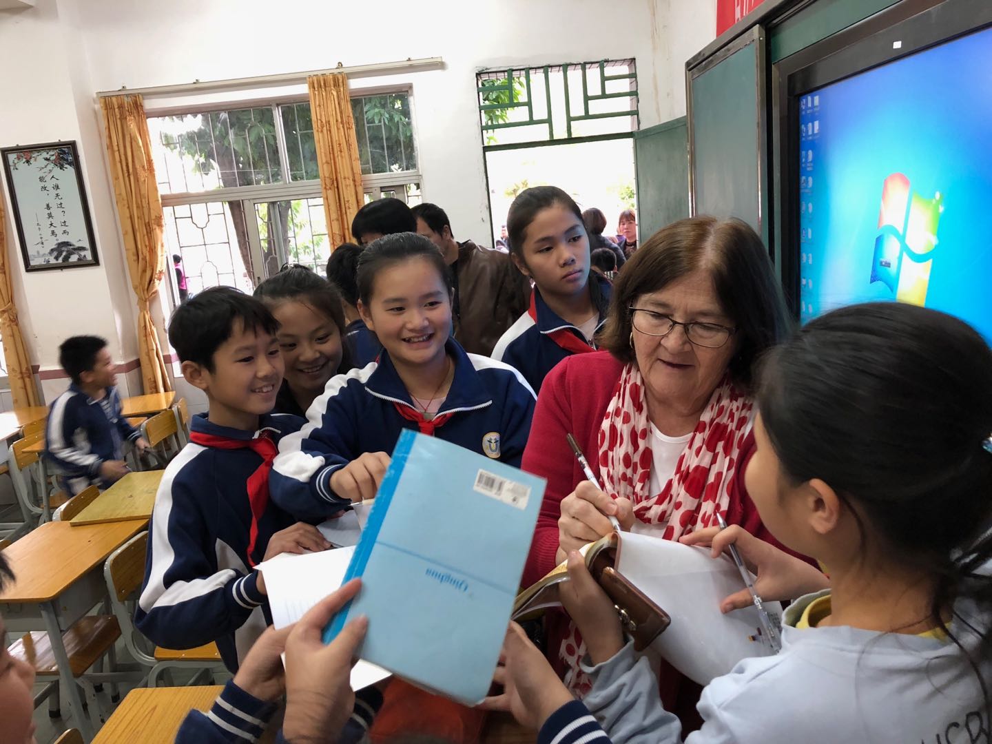 两位外教老师分别到云浮市邓发纪念中学和云浮市第一小学开展支教活动,为两所学校10个班级的近500名学生上课。他们用生动活泼的案例、多样的教学方式为云浮中小学生介绍了美国文化和学习英语的方法,深受学生的欢迎。