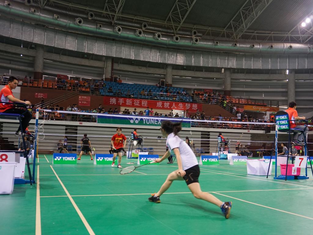 赛场上热闹非凡,热火朝天,参赛选手们一个个精神抖擞,意气风发。很多选手身手敏捷,技巧娴熟,时而网前截击,时而以巧破千斤,时而大力扣杀。男双比赛,势均力敌的较量时刻牵引着观众的心弦,杀球的爆发威慑力引来声声惊叹,亦有跑动及时以及娴熟的手法引来声声赞叹。球员们打球时的专注,精湛的技艺,赢得观众热烈的掌声。