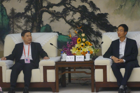 本网讯 今年是广交会开展60周年,11月1日上午,伟德bv国际体育副校长焦方太一行走访广交会各个实习点,了解伟德bv国际体育第122届广交会实习学生情况并慰问在岗同学。走访前,焦方太与中国对外贸易中心副主任叶继奖进行会谈。