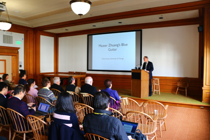 开幕式上,加州大学伯克利分校人文艺术学院院长Anthony Cascardi在致辞中阐述当今翻译在学术研究中的重要性,并介绍加州大学伯克利分校的翻译传统。美国科学艺术院院士、美国比较文学学会前会长、芝加哥大学教授HaunSaussy,英国皇家学会会士、欧洲艺术科学院士、埃克塞特大学教授Regenia Gagnier、加州大学伯克利分校东亚系系主任、著名翻译家Mack Horton分别做大会主旨发言。HaunSaussy在其发言“Master Zhuang’s Blue Guitar”中,通过对《沙门不敬王者论》、《高僧传》等佛教典籍文本的细读与跨语言对比,探讨《庄子》文本及其思想对于早期异域文化文本通过翻译传入中国这一过程的影响及意义。Regenia Gagnie的主旨发言综合文学、文化、政治及语言多领域的问题,从世界文学、文化及翻译研究的当前现状谈起,结合来自中国、欧洲、拉美、中东等世界不同文化中的文学作品,对不同政治经济环境下的文学交流与发展以及所涉及语言因素进行对比研究,并对当前语境下不同文化之间的文学沟通与交流做出反思。Mack Horton的主题发言“Make It Old: Premodern Translation in the Postmodern Age”则以日本典籍英译为例,分析了后现代语境下古典作品译者的任务及要求。他们的精彩讲座获得全场热烈的掌声。