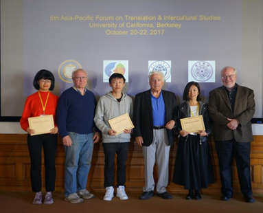 “语言文化多元性”和“跨学科性”是本次学术会议最为鲜明的特色。在小组讨论中,不同语言文化及学科背景的参会人员齐聚一堂,就翻译研究的前沿和经典问题各抒己见,人员中不乏年轻有为的学术新秀。大会为提交论文中评选出的三位青年学者颁发优秀论文奖,由美国艺术科学院院士、美国桂冠诗人、普利策图书奖和美国图书奖获得者Robert Hass、Charles Altieri、Mark Horton分别为来自(北京)清华大学的王敏、香港中文大学的黄若泽和东京大学的Eri Nakagawa三人颁发 Papers of Excellence with Young Scholars获奖证书。