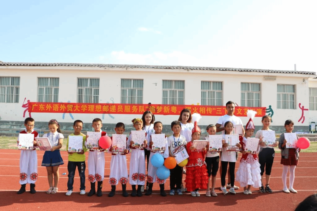 汇演结束后,“理想邮递员”的队员们向小朋友们赠送文具,鼓励他们日后更加努力学习。在十天的三下乡活动中,队员们不仅给小朋友们带来精彩的课堂,也遇见了更好的自己,收获成长的喜悦与感动。