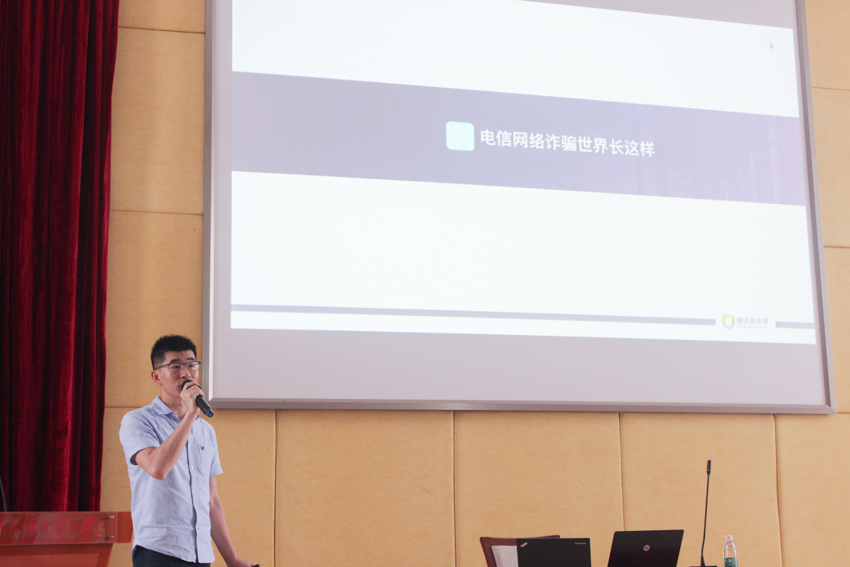 腾讯公司网络安全专家李新通过对网络诈骗具体案件的分析,分析了APPLE钓鱼诈骗、二维码诈骗等多种新型诈骗手段。会上,他还详细叙述了与大学生相关的网络兼职刷单诈骗,并揭示了其中予以小利、步步引诱的作案手法。他希望大家能引以为戒,选择安全的网络平台和密保手段,谨慎对待网络安全问题。