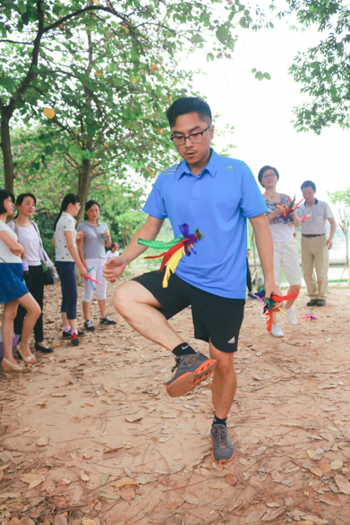 比赛进行得如火如荼,教职工们每每谈起战况都神采飞扬。结束后,大家不忘相互地讨教踢毽子技巧。“要背对风踢,不然最后成绩很受影响的。”“脚可以不要着地,这样可以节省时间。”