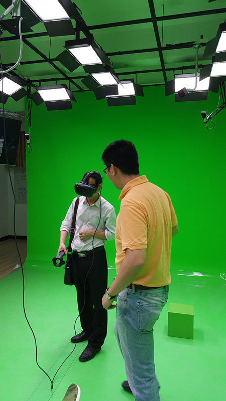 实训系统构建形成符合外语方向学生的各种教学场景资源库,为教学提供环境和平台;通过VR、MR全感虚拟交互设备的使用,为人机交互提供互动接口和平台,通过视觉即视冲击,形成虚拟空间中的意识体验和思维沉浸,使交互设备佩戴者以第一视角体验者融入虚拟的环境和空间中,体验外国文化场景、交流互动,在教室中即可实现空间转换及移动;而HTC头盔和互动大屏的结合,使立体、真实的效果在教室中最大化的呈现。真实立体的环境呈现和视觉冲击,加强学生的体验感和沉浸感。一名体验VR设备的同学说道:“当我只是一个旁观者时,我在屏幕上看到的只是普通的平面动画,看到我的小伙伴有时小心翼翼地挪动,有时欢呼雀跃地呼叫,让我觉得有些滑稽。然而带着VR设备的体验者却仿佛置身于另一个世界,不亲身体验是无法领会VR的奇妙的。”