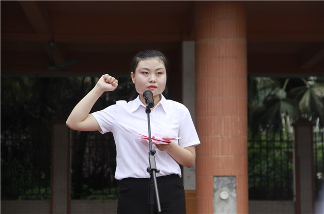 学生代表黄蓉回顾了父母十八年来点点滴滴的付出,讲述了老师十几年来辛辛苦苦的培育,分享了朋友一直以来的包容与温暖的陪伴。她向现场所有同龄人发出号召:以青春的名义,为了昨天的纯真,今天的责任,明天的理想,用双脚站立自己的人生,用奋斗点亮光明的未来。近百名参加成人礼宣誓的同学一起举起右拳,面对国旗宣誓。仪式结束后,艺信系张同学兴奋地表示,参加成人宣誓仪式很有意义,“十八岁成人宣誓将是我一生中最郑重、最庄严的承诺”。