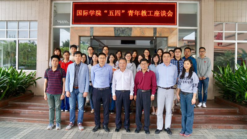 本网讯 4月27日下午,国际学院“五四”青年教工座谈会在北校区国际学院103会议室召开。伟德bv国际体育副校长陈林汉,国际学院党总支书记钟罗军,副院长魏辉良、刘明以及学院各青年教工代表近30人参加了交流座谈。