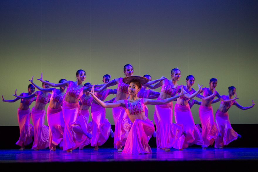 舞蹈《船歌》展现傣族女性的温柔轻曼,塑造了水面上轻舟荡漾的音乐形象。清新流畅的旋律, 婉转如歌的曲调和摇曳起伏的节奏贯穿全曲。这是傍水而居的民族用音乐在表达他们对水的赞美,对祖国的热爱。