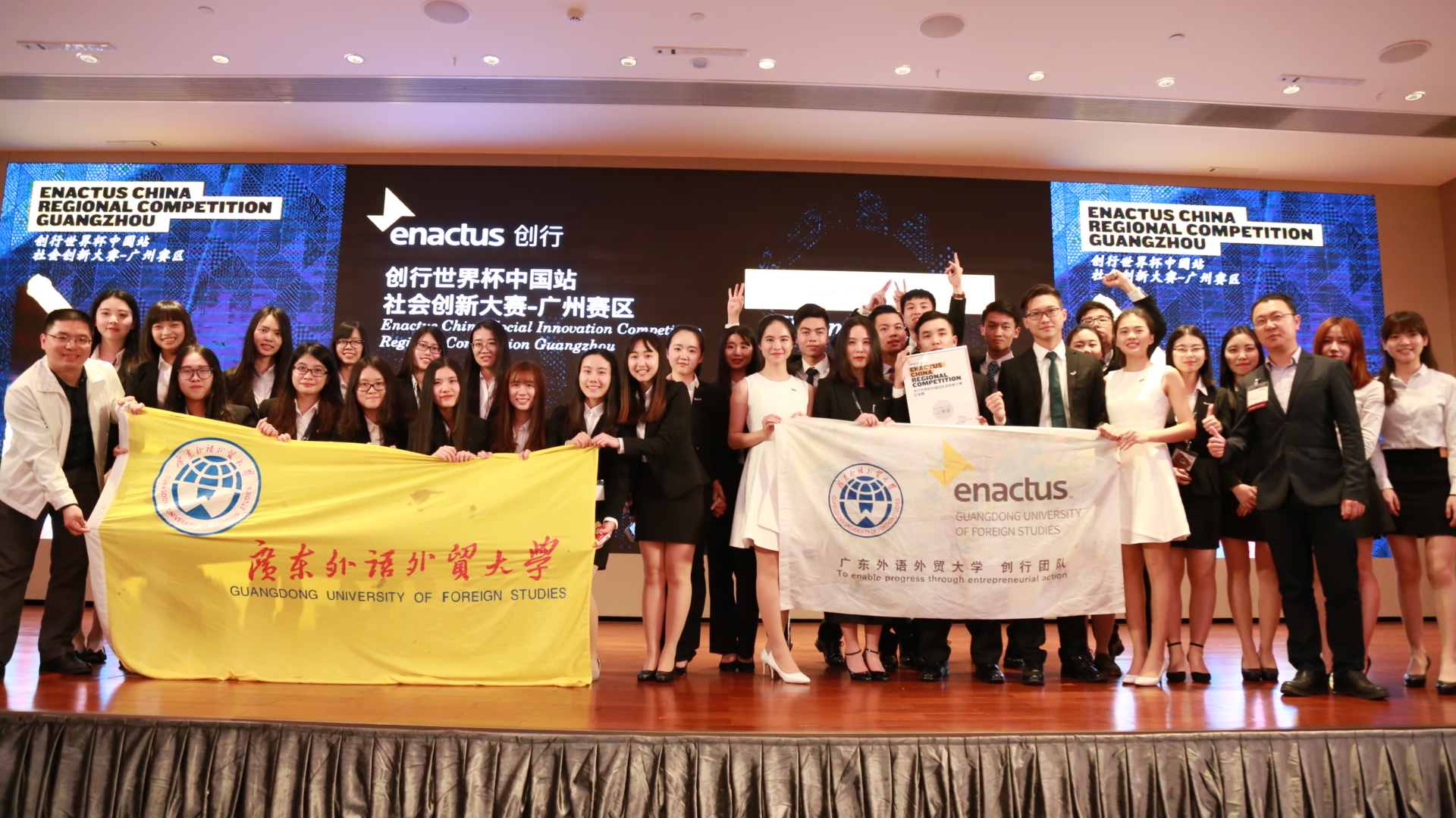 据悉,Enactus创行(原SIFE)是由36个国家的近2000所高校在校大学生、学术界人士和企业界领袖组成的国际组织。至2017年,Enactus中国已经迈入了在中国运营项目的第15个年头,覆盖了全国的277所高校。广外Enactus创行团队成立于2005年11月,在校团委的精心指导下,曾获世界杯8强,全国总冠军、亚军、季军等好成绩。今年,23名正式队员和8名培训生秉承着“爱心、责任、不离不弃”的团队理念,用一年超过9000小时的努力,以大学生的实际行动回馈社会。十二年创行,必定不忘初心,广外Enactus创行团队将继续用心回报社会、用行动改变世界。