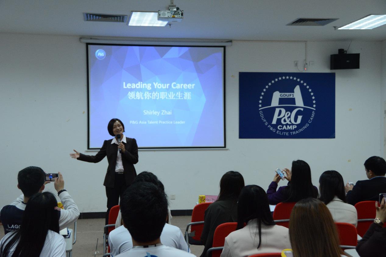 训练营导师陆机朝及训练营筹备组负责人谭振锋就广外宝洁菁英训练营的性质、宗旨、运作模式、成员福利及年度规划等方面进行了更深一步的介绍。随后,翟玉燕给第一届广外训练营的成员们进行了题为“Leading Your Career”的首堂培训课。她结合在宝洁24年的工作经验,与成员们分享了职业选择的心得。随后她还从自我认知、工作认知及公司认知三方面展开了深入浅出的分析。