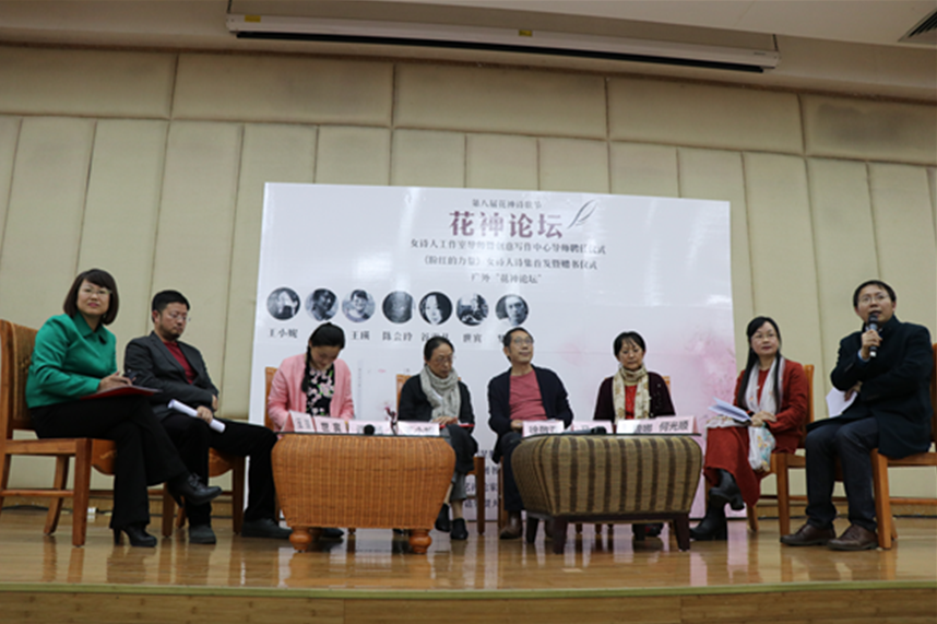 “花神论坛”活动异彩纷呈,当天还在六教103举办了“眼界与情怀——王小妮、徐敬亚诗歌讲座,以及由广州市青年作家协会和”云山凤鸣“联合举办、广外创意写作中心作为支持单位的全国大学生诗歌征文活动的颁奖典礼。