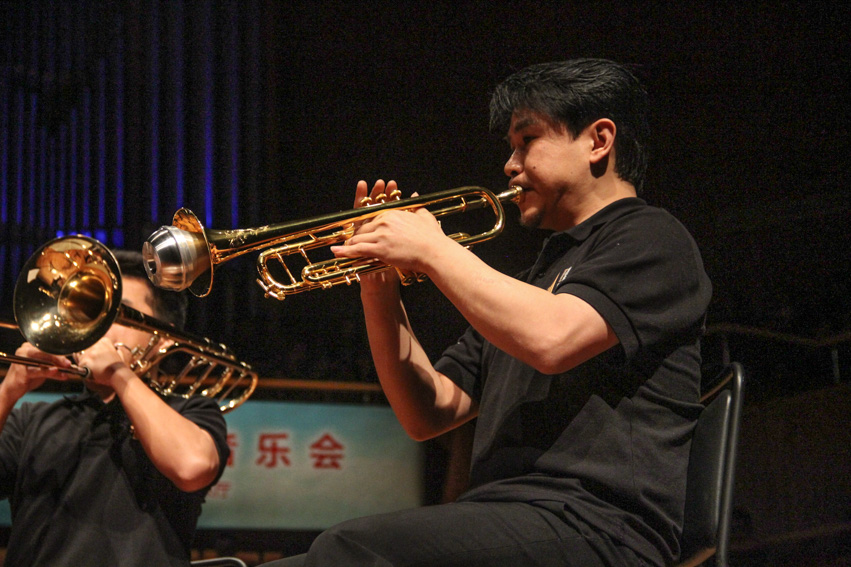 今年普及音乐会的独特之处,在于演出形式的丰富多样。除了常规的广州交响乐团和广州学生交响乐团之外,广交旗下的明星组合轮番上演精彩曲目。广州交响乐团“琥珀”弦乐四重奏带来埃尔加的爱的敬意,这首富有典型的小夜曲风格的四重奏,由小提琴奏出饱含深情的旋律,恰似来自恋人的绵绵情话,在柔美的曲调中,提琴的低沉音色既有一丝哀怨也洋溢着甜蜜辛福的味道,大提琴的挑拨和弦为我们描绘出爱情温婉动人的模样。紧接着,由广州非凡大提琴重组演奏的《梦之歌》则将大提琴的典雅音色展露无疑,如男声合唱般的舒缓,又像诉说般的细语,萦绕耳畔,动听至极。驰张的旋律,华丽的流转悦动,是“灿烂金属”铜管五重奏演奏的《诗人与农夫》序曲,大号的低音炮拉开恢宏的序幕,小号的明快节奏,圆号的柔和奏出具有金属质感的旋律;渐奏激昂,直击每个人的心;随着小号的节奏变慢,序曲的最后转为柔和的圆舞曲,纯朴清新的旋律给人一种浓厚的乡村气息。不同于前三首的典雅抒情,广州打击乐团带来的《科技先锋》则显得“热闹非凡”。鲜明的节奏,明确的音高变化使得台下观众情不自禁地打起节拍,低音鼓,铃鼓,木琴,木鱼等打击乐器和着观众们的节拍,共同呈现一出激昂的演奏曲。“过瘾!这是我第一次在音乐厅看交响乐演奏,打击乐的节拍简直棒极了!”会计学院的叶同学兴奋地说道。