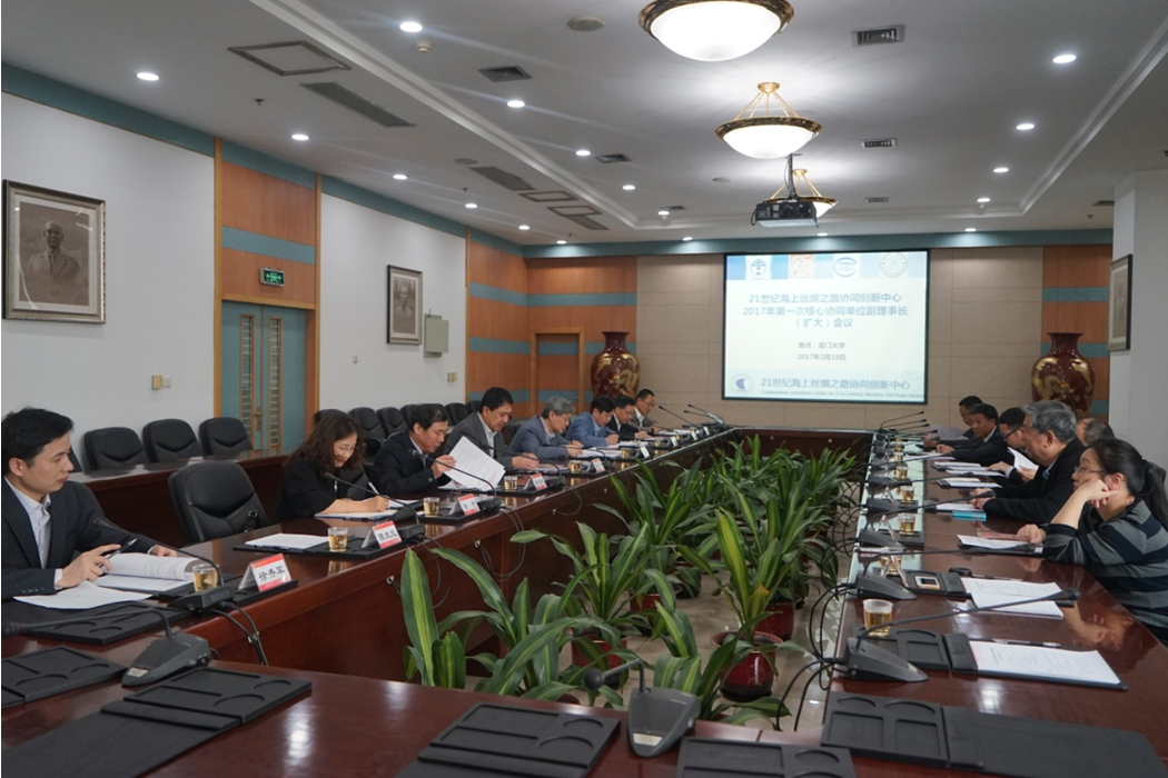 本网讯 2月19日,21世纪海上丝绸之路协同创新中心在厦门大学召开2017年第一次核心协同单位副理事长会议。会议审议了中心人才培养与管理暂行办法等文件,讨论并部署中心2017年重大工作事项。会议由21世纪海上丝绸之路协同创新中心常务副理事长、主任,伟德bv国际体育党委书记、广东国际战略研究院常务副院长隋广军主持。中心副理事长、中国社科院世界经济与政治研究所所长张宇燕,中心副理事长、厦门大学党委副书记、副校长李建发,中心副理事长、管委会主任、伟德bv国际体育副校长何传添,商务部国际贸易经济合作研究院处长安宁以及各核心协同单位相关工作负责人、联络员出席会议。