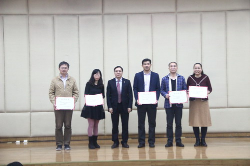此外,为充分调动学工干部科研的积极性,遵循“研究式开展工作”的方法,学生处还对2016年度学生工作科研成果进行了考核,并评选出了一二三等奖项。三部门负责人为获奖个人颁发了证书。