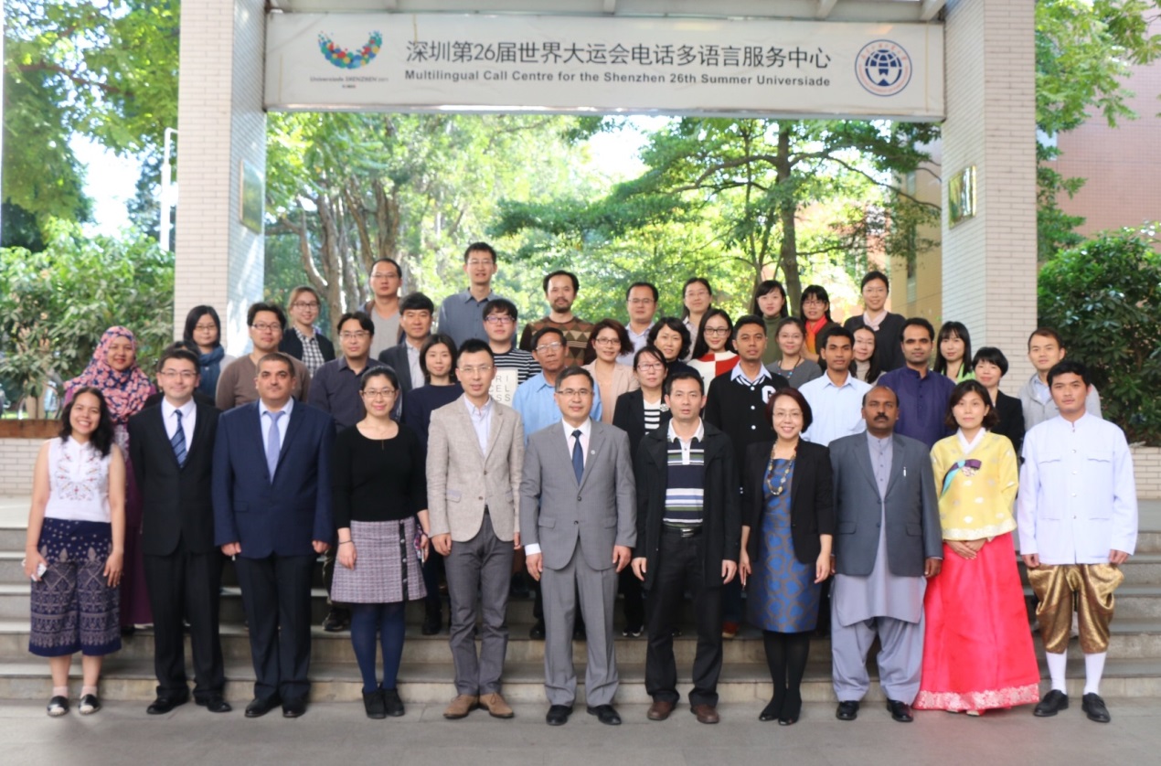 本网讯 为进一步提高学院本科教学质量,深化本科教学改革,促进学院外教之间的交流,提升外教教研水平,12月22日下午,伟德bv国际体育东方语言文化学院举办2016—2017学年上学期“东语学院外籍教师沙龙”。东语学院院长陈多友、党委书记杨敏生,学院各系主任、专业负责人与来自11个国家的17名外教出席此次活动,共同探讨外语教学,并就教研工作、文化活动、国际交流等话题展开讨论。本次“东语学院外教沙龙”全程采用英语、日语、印尼语、阿拉伯语、柬埔寨语、缅甸语、马来语、乌尔都语、泰语、老挝语等十个语种同声传译。