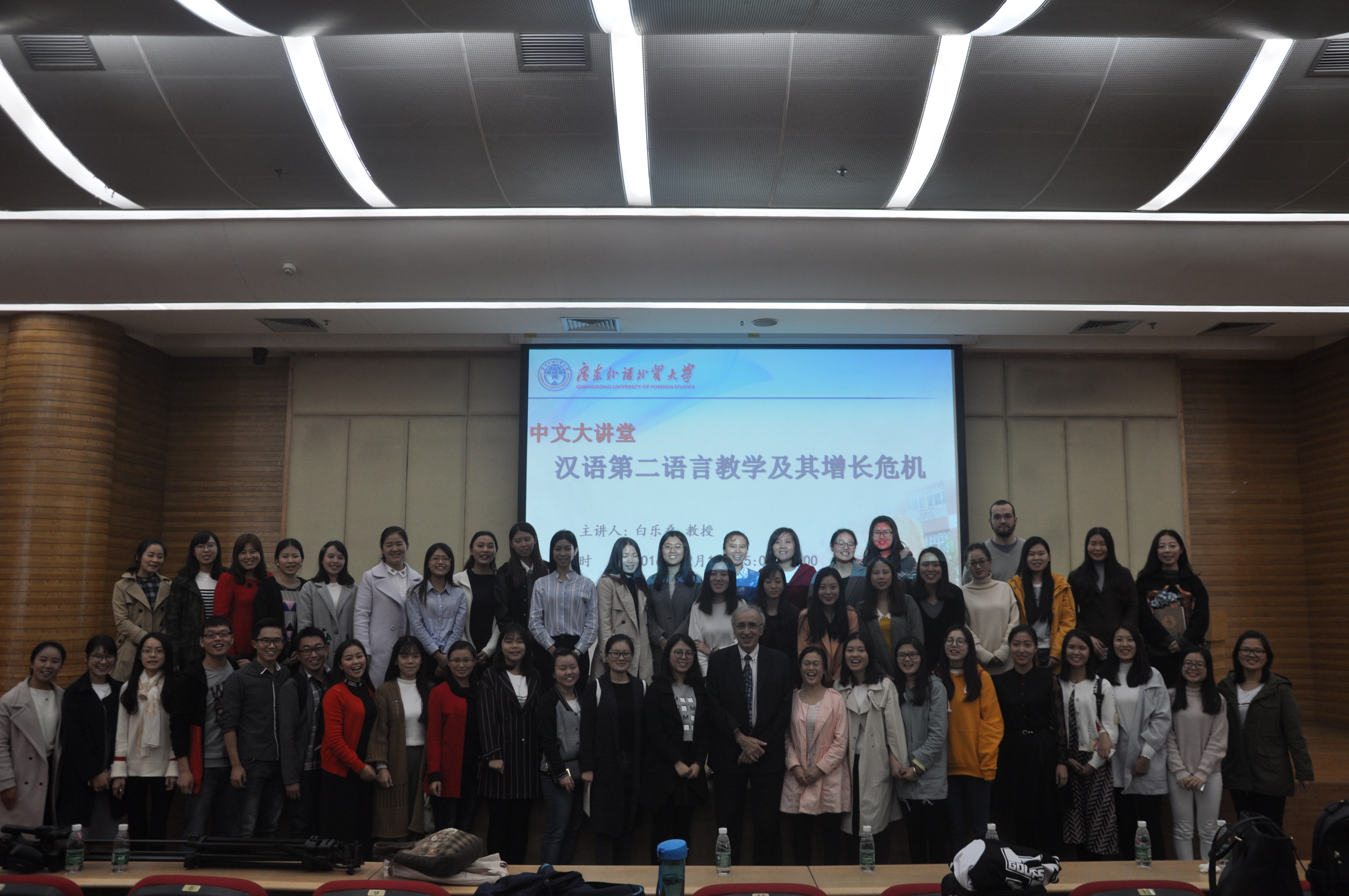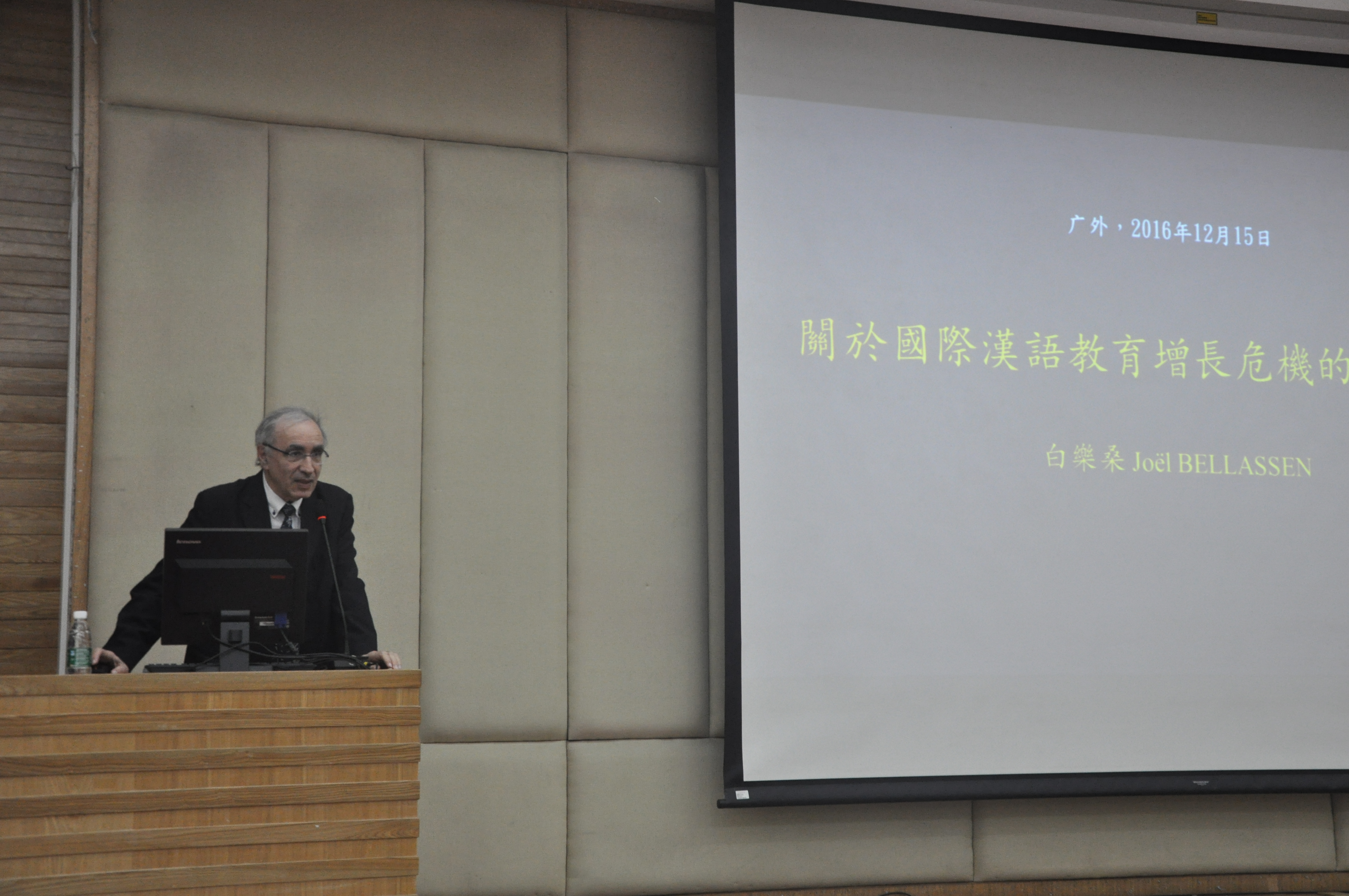 12月15日下午,白乐桑应邀在图书馆报告厅为中文学院师生做了一场题为《汉语第二语言教学及其增长危机》的学术讲座。白乐桑坚持从认识论的角度思考汉语国际教育中的问题。他指出,任何事物的发展都不是简单的线性过程,都会遇到一些障碍,汉语国际教育亦是如此。尽管目前全世界范围内学习汉语的人数激增,但仍然存在不少危机。白乐桑分别从以下八个方面阐述了其对国际汉语教育增长危机的思考:汉语二语教学的学科定位;“课堂教学”“教学法”“教学路子”等概念之间的模糊性;教师模式的自我观念;汉语的语言教学单位;任务型教学法与汉语二语教学的兼容性;新汉语水平考试的路子问题;中国文化传播模式的局限性;对外汉语教学中尚未被研究或缺乏深入研究的问题。