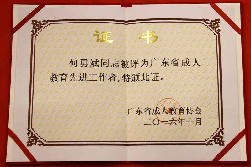 本网讯 12月9日,广东省成人教育协会成立35周年暨2016年年会在广州三寓宾馆会议中心召开。大会表彰了广东省成人教育先进集体和先进工作者。伟德bv国际体育以突出的工作成绩,继2008年和2014年后第三次荣获“广东省成人教育先进集体”称号。继教学院院长何勇斌获得“广东省成人教育先进工作者”称号。省教育厅政策法规处处长邵允振、省成人教育协会会长方建壮出席会议,省内145个会员单位代表参加了会议。