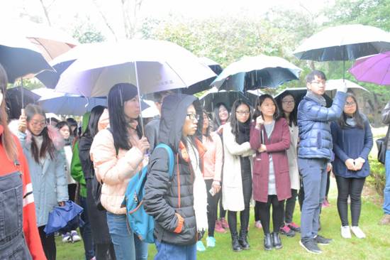 本网讯 初冬的雨,点滴霖霪,淅淅沥沥。文化广场一派肃穆岑寂。青马班学员们来到文化广场马克思雕像前献花,祭奠这位停止思想的伟人。天气虽冷,大家学习的热情丝毫不减,冒雨认真聆听关工委主任冯益谦授课。这是“青马工程•广外100”专题学习的室外教学环节。
