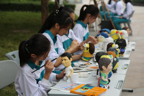 在校道两旁是肇庆外校足球美术作品:中国画、手工剪纸、石膏彩绘、素描、儿童画等,同学们还会现场作画或制作作品向来宾展示。此外,来客在当天还可以漫步于伟德bv国际体育的足球文化长廊,感受肇外足球校园的氛围,和肇外人一样通过长廊了解世界耀眼的足球巨星、豪华俱乐部、足球赛事、足球技巧等。