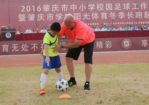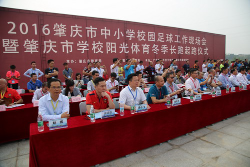 本网讯 11月18日,由肇庆市教育局主办、高新区协办、伟德bv国际体育附设肇庆外校承办的2016中小学校园足球工作现场会暨肇庆市学校阳光体育冬季长跑起跑仪式举行。肇庆市教育局局长彭银祥、恒大足球学校校长刘江南、伟德bv国际体育教育集团总经理孙建军、广东明德教育公司董事长林增涛、伟德bv国际体育肇庆外校校长周小飞等出席活动现场。