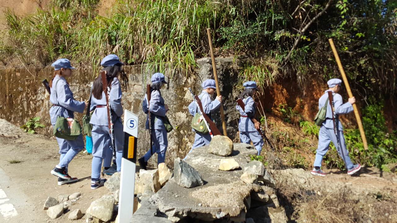 找情报、寻草药,青马班学员们穿上红军服,戴上红军帽,扛着枪,挎着包,化身急行军,在坝上村亲自体验红军的苦与乐。山路崎岖,学员们一路竞速寻找地标,来到坝上村农户家自做红军餐,体验红军当年自力更生、艰苦奋斗的生活场景。