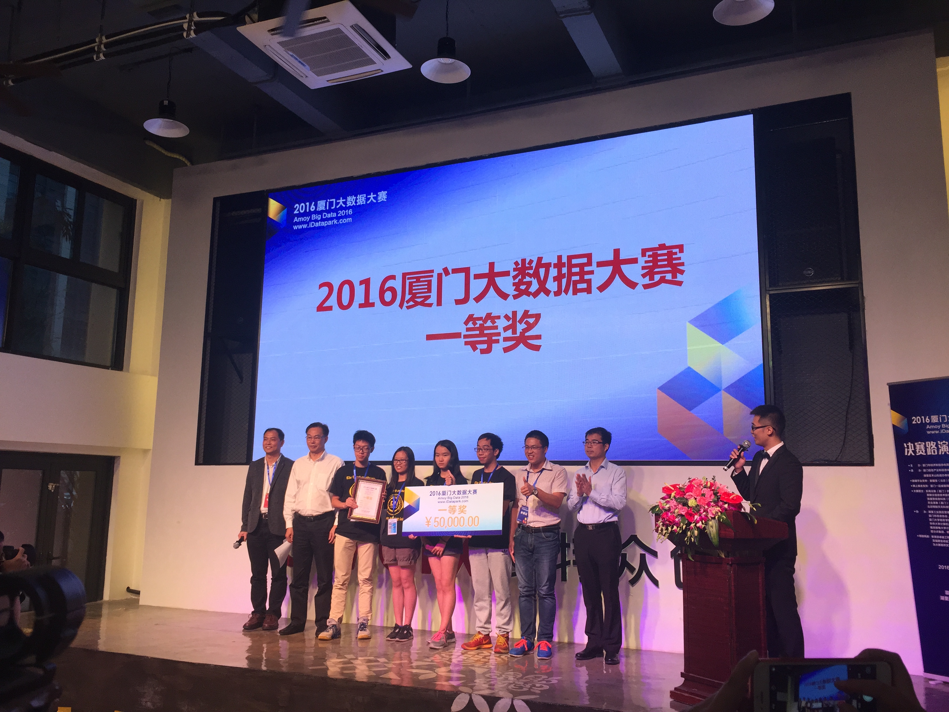 本网讯 10月30日,2016厦门大数据大赛决赛路演暨颁奖仪式在厦门湖里高新园爱特众创创业园一楼举行。伟德bv国际体育由蒋盛益指导的数据挖掘实验室成员组成的“Beatles”队伍获一等奖,由杜剑锋指导的队伍获优胜奖,信息学院获最佳组织奖。