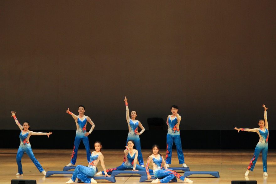 作为首位出场的日本舞者,柚田日菜子的脸上却看不出丝毫紧张,脸上始终挂着甜美的微笑。音乐声起,她即刻如同悦动的精灵,用动感的舞姿与有力的舞步诠释着青春的激情。魅舞蹁跹,影刻心中,展颜一笑,便是春天。她把舞台当作了自己释放能量的天地,一切都是那么自然娴熟。台下的观众也被柚田的表演感染了,齐齐跟着动感的节奏打起了拍子。当音乐骤停,她以轻松的一字马收尾,也依旧笑靥倾城。日本全国冠军大庭奈留的出场更是引爆全场。高难度的弹踢腿跳,极具节奏感的摆腿、踢腿,标准的三百六十度空翻,每一个动作都恰似与节奏融合一体,向观众展现了日本健美操的专业素养和世界级水准。