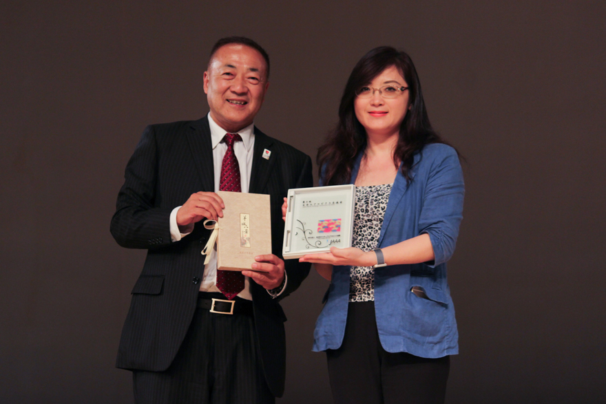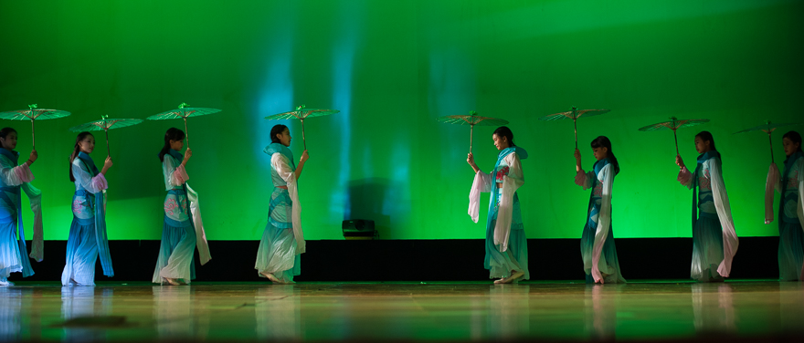 作为中日交流大会,自然少不了精彩绝伦的中方表演。由伟德bv国际体育各大舞蹈协会及附属单位构成的中方表演,展示了中华博大精深的传统文化以及伟德bv国际体育学子的蓬勃朝气。一首欢快的传统民歌,带出了一群身着金线红衣,头扎总角红发带的广外附中的小姑娘,“龙舟舞”为我们拉开了中方活动的序幕。她们活泼俏皮的舞蹈动作配上灿烂可爱的笑脸,将赛龙舟时的加油呐喊与庆祝端午节的欢乐场景生动地展现在了我们的眼前,真正地将生活融入了艺术,也让远道而来的日本友人感受到了浓浓的中国风。不同于 “龙舟舞”的欢快活泼,舞蹈《俪人行》却是用两首由《诗经》中的《江南》与《采薇》创作而来的古风歌,带我们置身于充满诗情画意的江南。在婉转悠扬的曲调中,来自广外外校中学舞蹈团的姑娘们,一个个清颜绿裙,青丝墨染,水袖飘逸,若仙若灵。尔后撑起的一把把油纸伞,让我们又一次联想到雨中江南,一位位身姿曼妙的少女踏着古韵撑着伞向你缓缓走来,“试舞一曲天下无”大概也不过如此了吧。