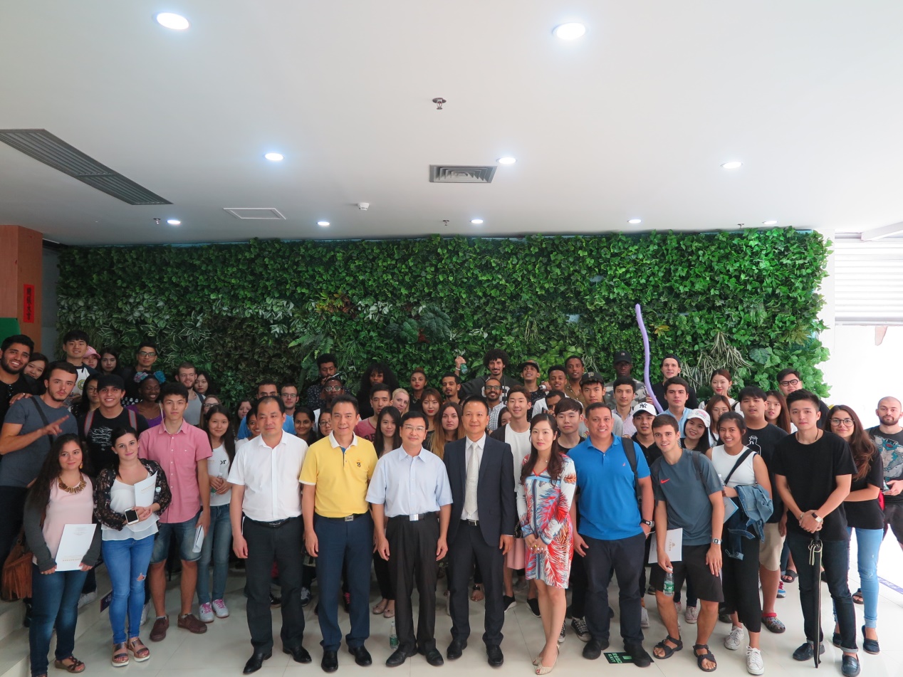 本网讯 9月29日下午,伟德bv国际体育留学生学院来自29个国家和地区的70名外国留学生,在院长梁学宏的带领下,前往中国国情教育系列活动的第二十六站—广大商贸城。活动上,广大商贸城·伟德bv国际体育,BETVICTOR官网外国留学生创新实习基地揭牌。华星投资集团董事长李福昌、董事会秘书罗倩婷、执行副总裁陈小华、一带一路俱乐部总经理邓强国、广大集团总裁许沛新、执行副总裁助理黄悦东等领导热情接待了留学生院一行。