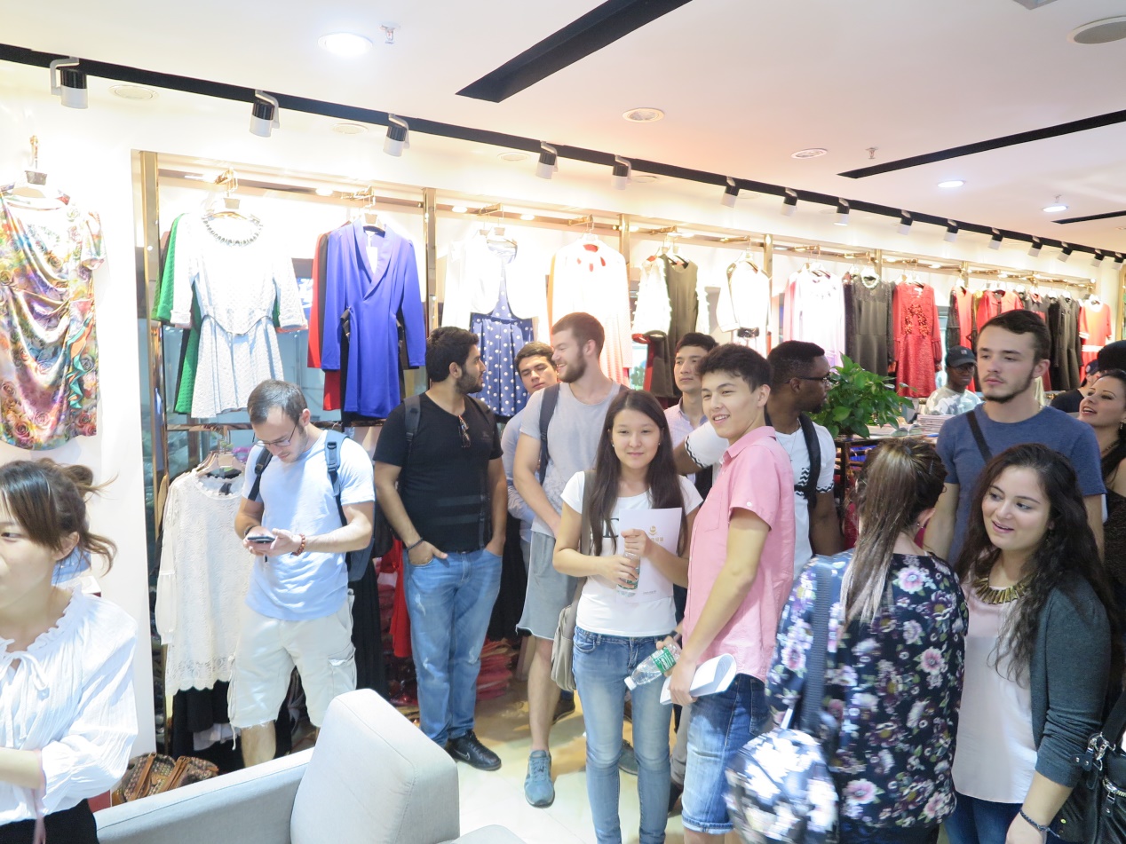 在陈小华等集团领导的带领下,留学生院师生参观了大学生创新创业孵化园、广大商贸城优质商户及各中心市场。