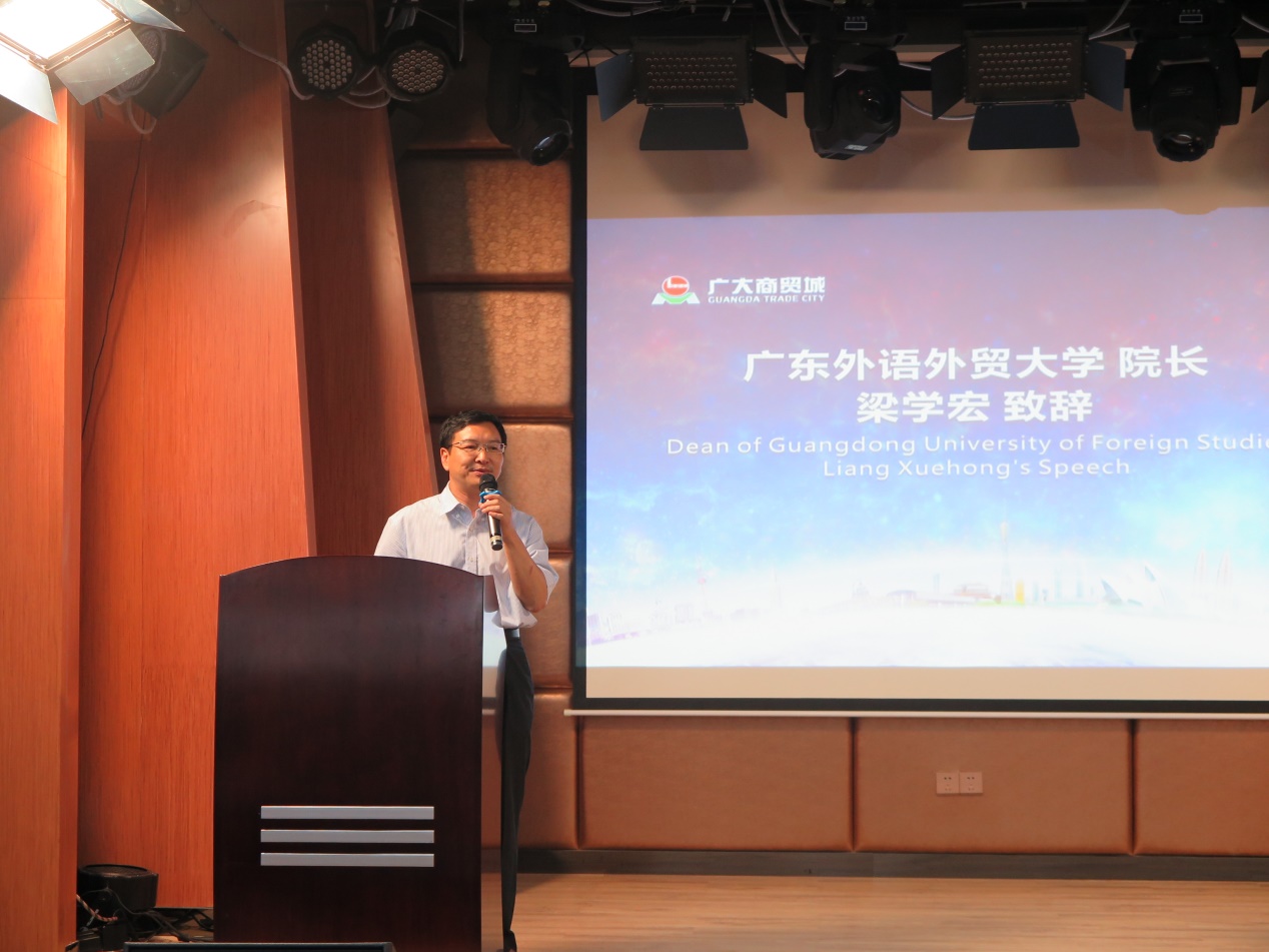 随后,梁学宏代表致辞表达了留学生创新实习基地落户广大商贸城的喜悦之情,他表示,创新实习基地是留学生实践、学习、实现创业梦想的良好平台。未来学校将有计划,有组织安排留学生到广大商贸城创业实习。希望留学生能借助广大商贸城创新实习基地创造属于自己的辉煌。