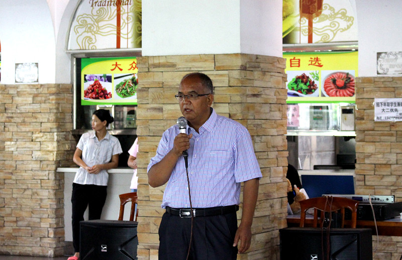 在当天的活动中,还有一位特殊的客人,他就是来自新疆喀什大学的挂职老师亚库甫。亚库甫用维吾尔语向大家问好并送上祝福。听到熟悉的新疆语,在坐的少数民族学生都不禁露出了开心的笑容。