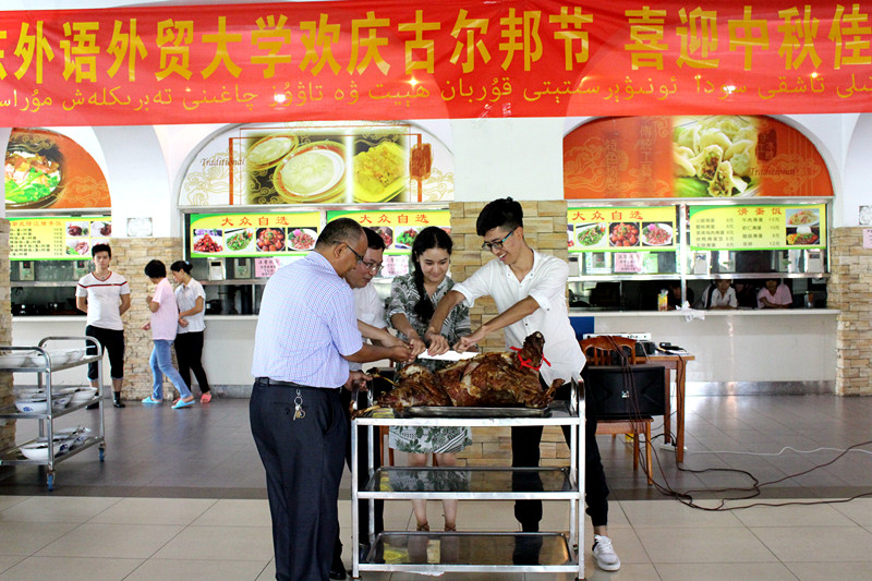 古尔邦节是新疆少数民族的主要节日之一,有牺牲、奉献之意,一般也把古尔邦节叫做牺牲节或者宰牲节。所以,宰牲也是古尔邦节的重要活动之一。活动现场,刘海春和同学们一起切开烤全羊,表示庆祝,还给新疆学生送上祝福和慰问金,并与大家一起举杯庆贺。